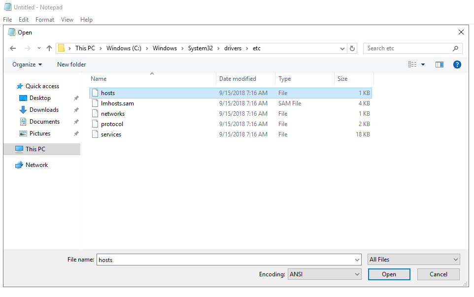 Open an RDP connection to the second server. Then, open Notepad as an Administrator, and open the file C:\Windows\System32\drivers\etc\hosts.